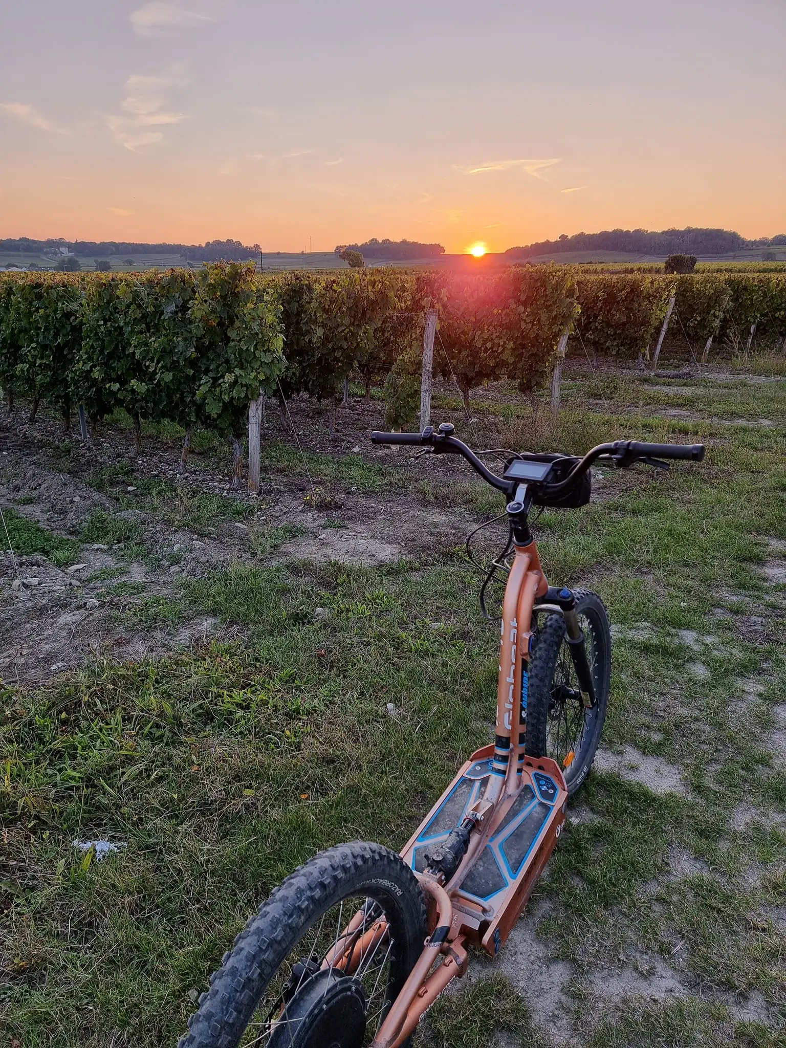 Grâce à ses grosses roues à crampons de cross, la trottinette électrique passe partout, en bord de Loire, dans les vignes ou les coteaux ! Et en plus en silence sans déranger la faune locale !